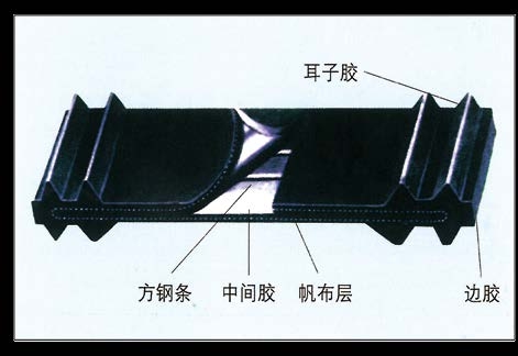 分為:普通鋼絲繩牽引輸送帶、阻燃鋼絲繩牽引輸送帶。 沿膠帶橫向鋪設方鋼條,其間以橡膠填充,用膠布包覆成為帶芯并 覆蓋上、下覆蓋層,在由此構成的帶體兩邊設置耳膠、邊膠。