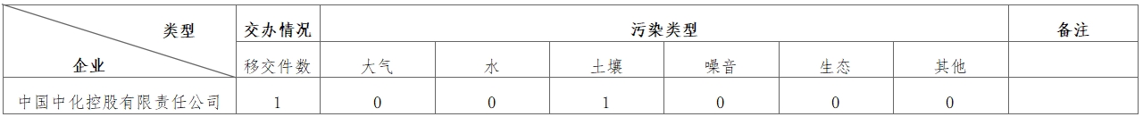中央生態環境保護督察組向中國中化控股有限責任公司轉辦第五批信訪舉報問題污染類型統計表