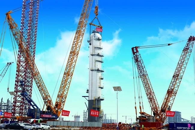 12月24日,中化泉州100萬噸/年乙烯及煉油改擴建項目首臺超限設備1#丙烯塔成功完成項目首吊,標志著項目安裝施工拉開序幕。作為進一步完善中化集團能源業務產業鏈的重大項目,泉州石化乙烯項目平穩推進。