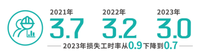 安全生產:安全生產是藍星埃肯的重中之重。據統計,藍星埃肯20萬工時總可記錄的工傷率(TRIR)連續三年下降: