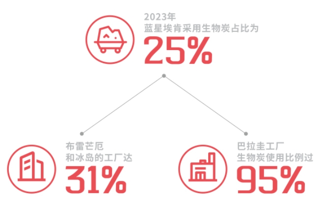 藍星埃肯通過在冶煉生產中用生物炭取代煤炭,在減少因化石燃料產生的二氧化碳排放方面處于行業領先地位,到2031年,藍星埃肯在冶煉生產中的生物炭使用份額將達到50%。