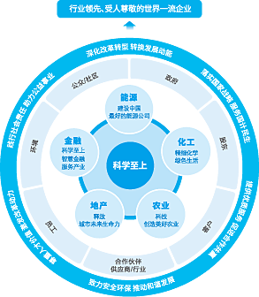 中化集團秉持“科學至上”核心價值理念,積極推進創新升級戰略,圍繞生命科學、材料科學、石油化工等領域,不斷加強產業鏈關鍵環節的核心能力建設,在大力發展核心主業的同時,實現了城市運營、產業金融等業務板塊的均衡發展,企業價值持續提升,在行業中的影響力和帶動力不斷增強,已成為促進相關產業發展的一支重要力量。