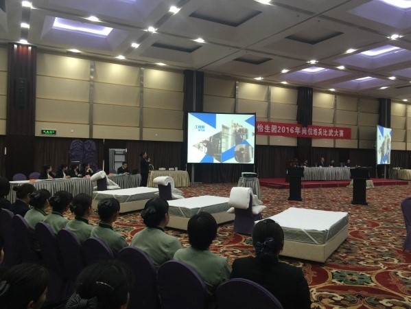 為提高怡生園員工的整體服務技能和職業素養,展現怡生園員工自強不息,勇于超越自我的風采。4月29 日,怡生園2016年崗位練兵比武大賽在多功能廳揭開帷幕。崗位練兵比武大賽為怡生園年度重大活動,旨在通過比武大賽為員工搭建一個展示、交流的平臺,綜合演繹員工個人素質和技能水平。為組織好本次大賽,各部門都高度重視并積極參與大賽籌備的工作。今年的崗位練兵比武大賽是也是近幾年來參賽項目最多、參賽形式最豐富、規模最大的一次比賽。此次現場比賽共有14個項目,參賽選手共有54人,現場之外的比賽共有6個項目,參賽選手共有20人。