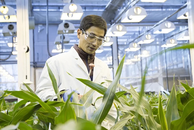 圖為先正達(dá)集團(tuán)中國種子科研人員在溫室大棚中選育良種