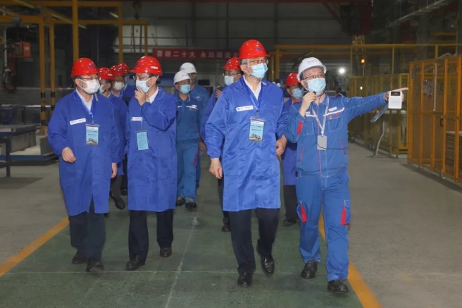 在藍星北化機,李慶一行參觀、考察企業展廳和電解槽車間,詳細了解公司發展歷程、技術設備運行和生產工藝流程等情況, 慰問基層一線員工并送上清涼解暑水果飲品,聽取有關工作匯報。李慶充分肯定藍星北化機在生產經營、科研創新、黨建和人才工作方面取得的成績,強調要抓住疫情形勢好轉有利時機,繼續加大科技投入研發力度,抓緊培育戰略性好產品,全面提升核心競爭力。 李慶就做好下半年工作提出五點要求:一是胸懷大局,在新中化戰略新征程上有新作為;二是做好迎接宣貫黨的二十大各項工作;三是持續開展好“攻堅克難、黨旗飄揚”主題活動;四是更加重視人才隊伍建設;五是繼續壓實黨建工作責任和基層組織建設任務。最后,李慶強調,要樹牢“生產安全”理念和“廉潔安全”理念。 |