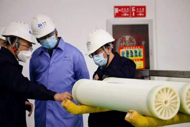 2月8日-10日,中國中化董事長、黨組書記李凡榮一行赴中國中化駐浙企業調研,看望慰問一線干部職工,了解企業學習宣傳貫徹黨的二十大精神和生產經營、科技創新、安全生產、高質量發展等情況,強調各企業要深入學習貫徹黨的二十大精神,以高質量黨建引領保障高質量發展,加快建設世界一流企業,奮力譜寫中國式現代化的中化篇章。 2月8日,李凡榮一行赴杭州水處理海水淡化裝備制造基地調研,聽取企業工作匯報,詳細了解杭州水處理在核心業務方面的基礎及規劃,并從企業定位、協同發展等方面進行指導。