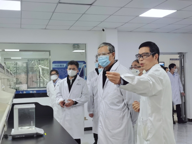 ▲在浙化院實驗室調研 在浙化院,李凡榮對浙化院70年堅守科研、不斷創新的發展之路表示肯定。他指出,中化藍天產銷研結合是中國中化的標桿。浙化院要放眼氟材料未來發展趨勢和需求,用戰略科學家的視野和思維,布局科技項目,以前瞻性引領更長遠發展。