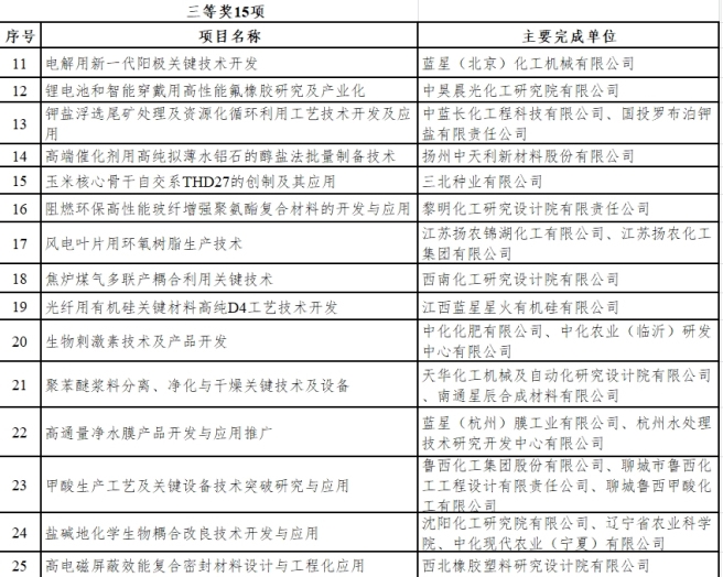 2023年度中國中化科技進(jìn)步獎獲獎項目