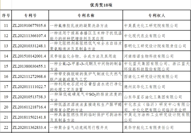 2023年度中國中化專利獎獲獎項目