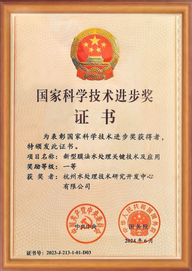 6月24日,全國科技大會、國家科學技術獎勵大會、兩院院士大會在京隆重舉行,習近平總書記出席大會并為2023年度國家科學技術獎獲獎代表頒獎。 2023年度國家科學技術獎共評選出250個項目,包括49項國家自然科學獎,62項國家技術發明獎和139項國家科技進步獎。中國中化共榮獲1項國家科學技術進步獎一等獎和1項國家技術發明獎二等獎。 國家科技進步獎一等獎 “新型膜法水處理關鍵技術及應用” 中國中化所屬杭州水處理技術研究開發中心有限公司(簡稱“杭州水處理”)等單位完成的“新型膜法水處理關鍵技術及應用”項目榮獲2023年度國家科學技術進步獎一等獎。中國工程院院士、杭州水處理首席科學家高從堦作為獲獎代表上臺領獎。