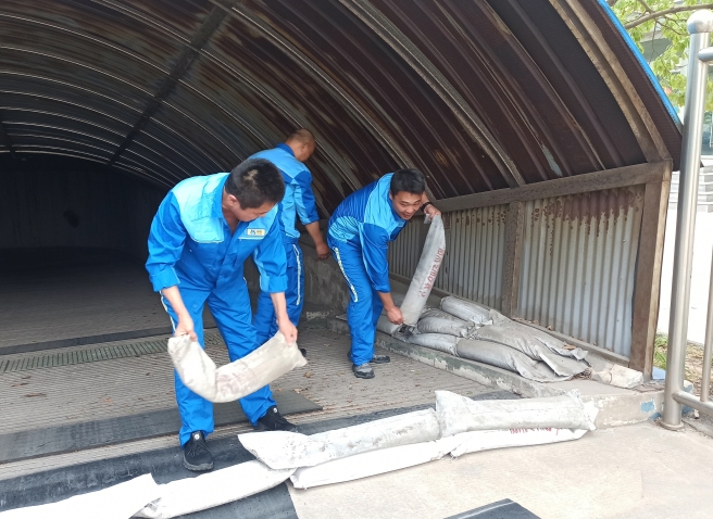 以“迅”應汛,筑牢安全防線 中化橡機桂林基地:6月19日,廣西桂林遭遇自1998年以來最大洪峰。面對險情,中化橡機桂林基地迅速展開行動,徹夜奮戰,憑借周密的防洪預案和高效的應急措施,最大限度降低公司財產損失。 根據桂林市汛情動態,基地每天安排24小時值守人員,并提前在大門以及易內澇區域設置十余處防洪擋板,堆壘防洪沙袋500余袋。此外,基地還新裝、增運備用防洪沙袋約500袋,同時組織人員清理疏通下水道,全面排查基地電路,并備好抽水泵。 當日16時左右,洪水開始倒灌廠區,水位急速上升。基地迅速啟動應急響應,干部職工緊張有序開展汛情水位巡查、物資安全轉移、防洪物資轉運、防洪沙袋加固加高、設備地坑抽水、用電線路和車間安全巡查。經過各條線員工的共同努力,此次基地未發生設備事故、安全事故,未造成環境污染事件。目前,各項災后復產措施正緊鑼密鼓進行中。