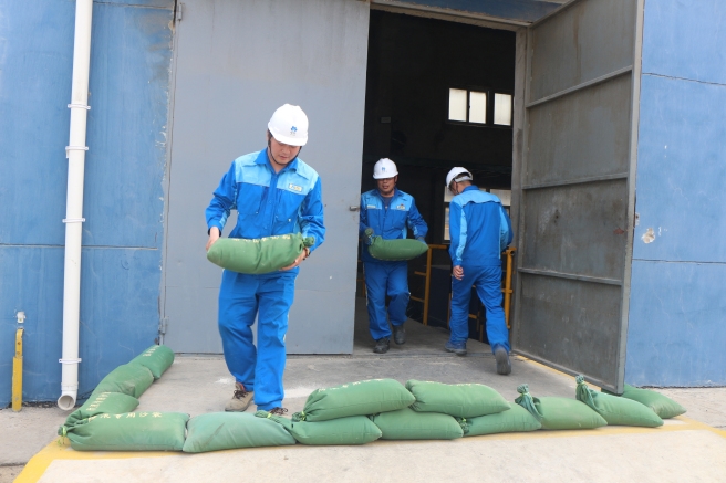 中化橡機三明基地:在福建三明,中化橡機三明基地組織人員全面疏通廠區外防洪溝、雨水排放口,重點對液氧儲罐區、丙烷庫房防雷接地、廠區圍墻等關鍵區域進行安全隱患排查,針對容易產生雨水倒灌的區域,提前備好應急沙袋,全力做好防汛排澇工作。