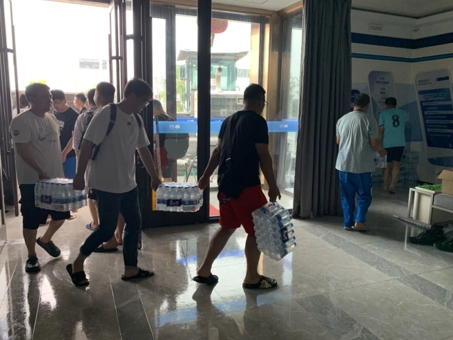 圖片在沈兄弟企業為沈陽化成送來瓶裝水等救災物資 中化泉州石化 當臺風“格美”還在蓄力時,位于福建泉州的中化泉州石化就迅速行動,在臺風來臨前召開生產調度會,對抗臺防汛工作進行統籌安排和周密部署。 為保障安全生產,中化泉州石化全面停工現場直接施工作業,運行部裝置班組人員根據防臺抗臺相關應急預案,開展隱患排查,嚴格落實值班值守,確保及時報告、有效處置防臺緊急事件,全力打好防御臺風主動仗。 臺風登陸后,全廠員工保持警惕,加強檢查并組織力量對受損設施進行修復,為中化泉州石化安全生產保駕護航。