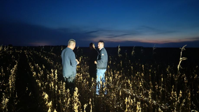 10月2日,中種集團小麥與油料業(yè)務(wù)員工連夜查看生物育種品種“中聯(lián)豆1505”的成熟情況,并監(jiān)督、指導(dǎo)大豆收割、倉儲工作。今年,中種集團在興安盟大面積示范種植“中聯(lián)豆1505”和“中聯(lián)豆2109”系列耐草甘膦品種,培育出多個畝產(chǎn)超300公斤的高產(chǎn)地塊。