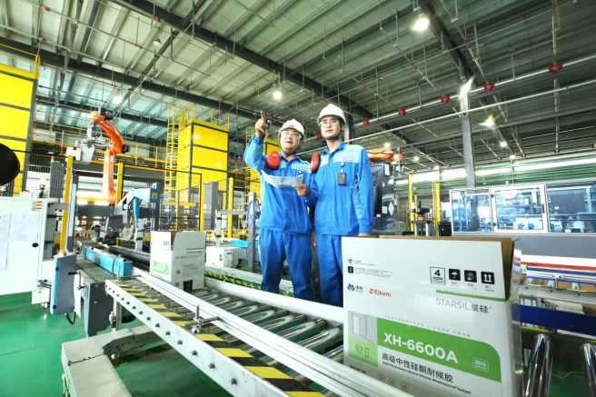 埃肯星火有機硅 國慶期間,在埃肯星火有機硅四分廠特種密封膠生產(chǎn)車間里,一支支密封膠有序傳動,機械臂自動封包……從生產(chǎn)一線到項目工地,埃肯星火人堅守崗位,忙生產(chǎn)、保安全。