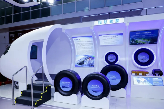 亮點1:以新提質? 配套民用航空產業鏈 在先進制造鏈展區,中國中化攜多款民用航空輪胎亮相展臺。其中,首條裝配空客A320飛機的國產子午線輪胎剛剛于11月21日試飛成功,吸引眾多參觀者駐足。 民用航空輪胎 民用航空輪胎是民用航空產業鏈上的關鍵配套部件,關乎飛機起降安全。中國中化基于熱力耦合構型優化、關鍵橡膠材料模量匹配優化等創新技術研發的高性能民航子午線輪胎,為民用航空產業鏈提供了堅實保障。目前,中國中化已具備為中國商飛、空客、波音多種機型提供輪胎的能力,研制的產品實現中國商飛、空客、波音三大主機廠主力機型全覆蓋。