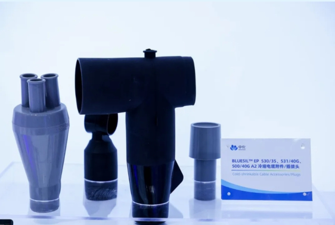 亮點3:多元布局? 助力新能源產業發展 中國中化是新能源領域用化工新材料供應品種數量和供應規模均領先的中央企業之一,構建了以鋰電池、風電、光伏產業用關鍵材料為重點,品種豐富、技術領先的新能源化工新材料產業體系。 光伏綠電 中國中化帶來在光伏、綠電領域最新成果:高性能含氟膜材料PVF薄膜有助于實現光伏組件輕量化,也是新能源、建筑、防腐等領域的重要原材料;采用BLUESIL? EP系列材料制造的冷縮電纜附件與插拔頭,具有極低的拉伸永久變形率、卓越的斷裂伸長率以及強大的抗撕裂性能,是綠色電力設施的理想之選。