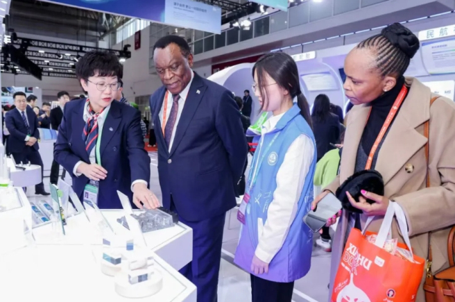 國家發展和改革委員會產業發展司等部委單位,湖北省、江蘇省南京市、河南省焦作市等地方政府觀展團,美國駐華大使館、巴西駐華大使館、南非駐華大使館、泰國商會、加納商會等外交及國際組織觀展團蒞臨中國中化化工新材料產業鏈展臺,了解中國中化化工新材料在民航輪胎、民航材料、低空經濟、醫療健康、新能源和綠色建筑等產業鏈領域的前瞻布局和自主創新能力。