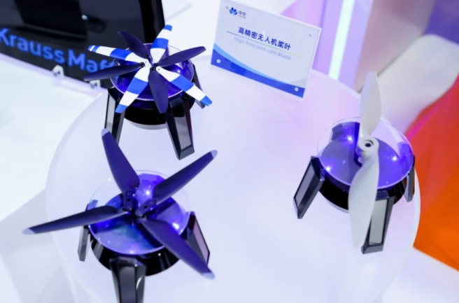 民用航空材料 除民用航空輪胎外,中國中化還展示系列以創新技術加持的民用航空材料:芳綸-航空輕量化材料和e-VTOL碳纖維覆蓋件樣品,可確保飛行器結構件兼具強度與剛度,并滿足機身輕量化需求;應用于飛行器氣動密封、增壓密封、燃油密封、防火密封、系統密封等場景橡膠密封件;兼具光學性能、耐候性和高機械強度的航空有機玻璃,可應用于透明視窗、儀表板等透明件制造;此外,中國中化還展示了應用于航空領域的高性能涂料、PVF膜等產品。? 配套低空經濟產業鏈 中國中化旗下機械裝備企業展出的精密注塑工藝設備,可高效加工高性能玻璃纖維或碳纖維增強材料,確保無人機槳葉等零部件的高精度和高品質,助力低空經濟發展。