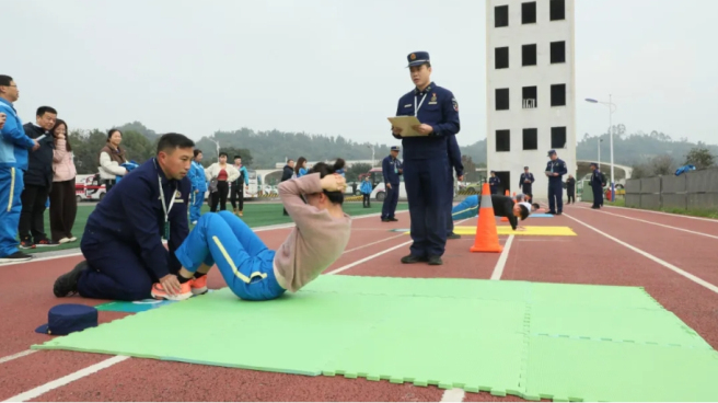 在身體素質(zhì)測試環(huán)節(jié),選手們在跳繩、仰臥起坐、俯臥撐等項目中進(jìn)行激烈比拼。