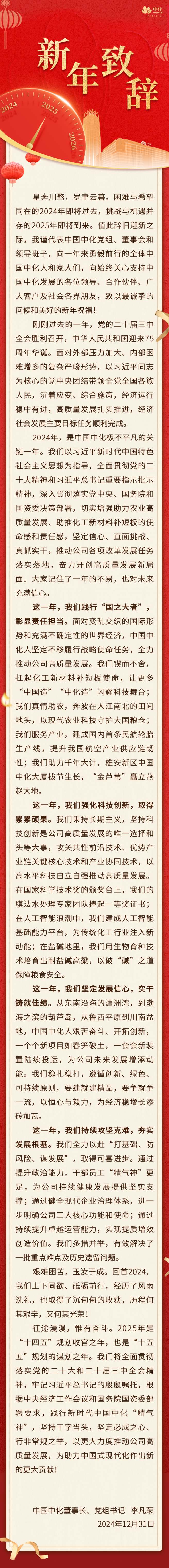 中國中化董事長、黨組書記李凡榮新年致辭
