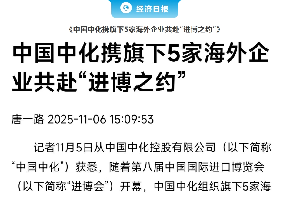 日前,第八屆中國國際進口博覽會正式落下帷幕。在進博舞臺上,中國中化與全球合作伙伴深化互信、加深合作,攜手共享中國發展機遇,開放競進、不斷突破,以卓越創新驅動新質未來。 進博會期間,中國中化創新成果獲得眾多媒體廣泛關注與報道。