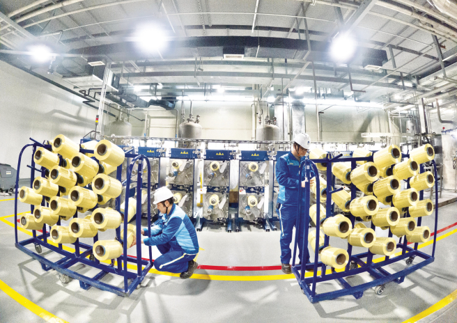 一輛輛卡車載著生產(chǎn)材料來(lái)回穿梭,機(jī)器設(shè)備的轟鳴聲此起彼伏……這是揚(yáng)農(nóng)化工葫蘆島大型精細(xì)化工項(xiàng)目生產(chǎn)建設(shè)的忙碌景象。目前,一階段項(xiàng)目已進(jìn)入試生產(chǎn),二階段項(xiàng)目已進(jìn)入機(jī)電安裝階段,預(yù)計(jì)今年三季度全面投入生產(chǎn)。為確保項(xiàng)目按期投產(chǎn),建設(shè)團(tuán)隊(duì)正在科學(xué)調(diào)度、優(yōu)化施工方案,全力克服冬季施工困難,高質(zhì)量推進(jìn)項(xiàng)目建設(shè)。 揚(yáng)農(nóng)葫蘆島生產(chǎn)基地采用國(guó)內(nèi)先進(jìn)的生產(chǎn)工藝、裝備設(shè)施和數(shù)智化控制系統(tǒng),旨在打造行業(yè)領(lǐng)先的綠色低碳智慧工廠。項(xiàng)目自2023年6月開工以來(lái),員工從多地趕赴項(xiàng)目建設(shè)一線,先后克服地域、氣候、工期等重重挑戰(zhàn),僅歷時(shí)13個(gè)月就完成了從開始建設(shè)到試生產(chǎn)的全部工作,刷新了項(xiàng)目建設(shè)“揚(yáng)農(nóng)速度”。 中化高纖年產(chǎn)2500噸對(duì)位芳綸擴(kuò)產(chǎn)項(xiàng)目全力推進(jìn)智能化升級(jí)