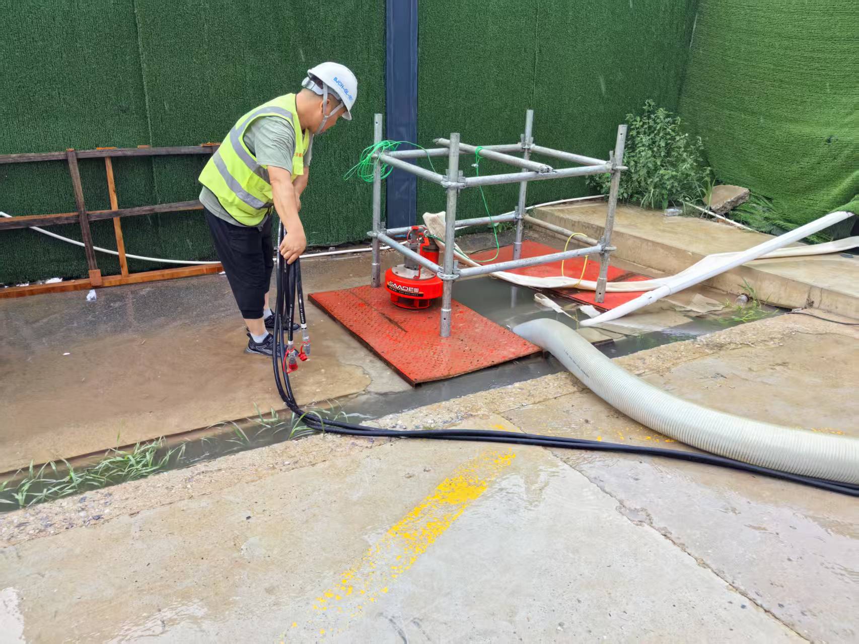山東圣奧:汛情形勢嚴峻,山東圣奧安排專人進行24小時不間斷值班巡查,密切關注雨情水情變化。一旦發現險情,便立即啟動應急預案,調配人力物力展開搶險救援。強降雨過后,員工用潛水泵進行外部抽水作業,防止低洼處出現積水隱患,保障汛期安全生產。