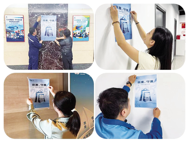強認同? 廉潔文化氛圍今秋又濃 每年9月,秋風清朗的收獲季節,公司上下都充滿濃厚的廉潔文化宣傳氛圍。今年,從北京凱晨世貿中心到雄安新區中國中化大廈,從辦公區到員工食堂,從工廠車間到田間地頭,處處是藍色的廉潔主題海報。“知規明紀 崇德尚廉”的公司廉潔文化,已成為員工共識,“9·10就要廉”的廉潔信念深入人心。