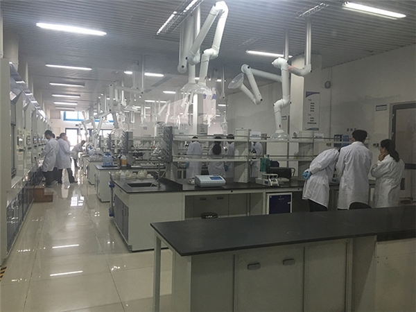 泉州石化研究人員在環保監測實驗室內進行檢測。(鄧亞卿攝)