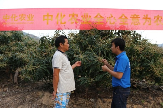 “我100畝芒果地,明年要擴大10倍,一定要到1000畝!”海南省三亞市亞龍灣南新農場的福建籍果農張國強正籌劃著干件大事情。 對于人均耕地面積偏低,區域化耕地分散經營,土地流轉規模不大的海南農情來說,在三亞擁有100畝芒果地,張國強絕對算是種植大戶了。 100到1000,10倍擴大自己的果地面積,對有近10年種植經驗的果農張國強來說,當然不是一次頭腦發熱的冒進,而是結合市場需求與現實耕種能力的用心謀劃。 在張國強身后,身著藍色中化農業短袖制服的農藝師黃耿磊正弓著腰,在芒果樹下緊張忙碌著。旱季來臨前,張國強的芒田必須全部鋪設完成自動化滴灌管道。 “安裝自動化灌溉系統,不僅可以保障灌溉效率,省去高昂的人工灌溉作業成本,又為水肥一體化的農藝技術實施提供了便利。”中化化肥海南分公司農藝師黃耿磊告訴記者。 實際上,果農張國強早已將自己的芒田全程技術托管給了中化農業海南MAP技術服務中心,從100畝擴種到1000畝,張國強已確定將心中的“大事”,一并托付給他們。但在海南生根發芽開花的中化農業(現代農業技術服務平臺)經作MAP模式要干的大事,能提供的輻射到產業鏈的服務,遠不止這些。