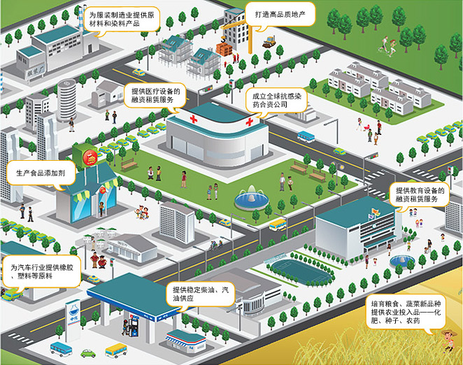 化工:中化帝斯曼制藥有限公司完成交割,助力中國抗生素行業技術能力的提升 金融:為縣級醫院改善基礎設施提供服務,推動缺醫少藥地區醫療事業發展。截至2011年底,遠東宏信服務醫院總數為1507家 |