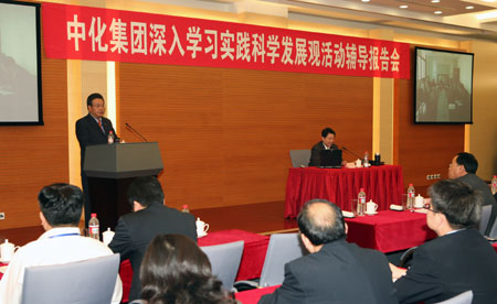 羅總在報告會上指出,學習實踐科學發展觀活動是當前各項工作的重中之重,廣大黨員特別是黨員領導干部,在當前金融危機加劇、經濟形勢動蕩的情況下,要更進一步認識開展學習實踐活動的現實意義和緊迫性,進一步增強抓好學習實踐活動的主動性和自覺性,緊緊圍繞“以科學發展觀為指引,化危為機,加速轉型,提升中化集團國際競爭力”這個實踐載體,確保學習實踐真正取得實效。