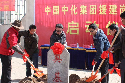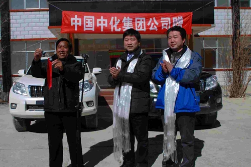 圖為作者(右一)與同批中化援藏干部楊宏(右二)在中化集團向崗巴捐贈工作車輛儀式現場。 在我們這一屆援藏干部中,已經有3人先后在西藏去世,有因患上高原性肺水腫的、有因車禍去世、還有因心肌梗死離開人世。他們來到西藏,帶著奉獻西藏的美好情誼,為當地的生產和建設做了大量工作;他們走得光榮,因為他們奉獻了身體和家庭,更奉獻了人生! 每一個來西藏的人,都會被西藏的博大廣闊而震撼,也會被藏族人的淳樸而感動。當下,這樣的淳樸已經很少見。每一個援藏干部來到西藏后,都想為當地人做點事。我們也分別資助了幾個小學生,每次下鄉都去學校看看他們及家人。每次看到孩子純真的臉龐和大人感恩的目光,都會覺得我們即使做得更多都是應該的,因為他們讓我們感受到了那份久違的純真和親情。 圖為作者(左三)與同批中化援藏干部楊宏(右二)在中化集團援建項目奠基儀式上。 |