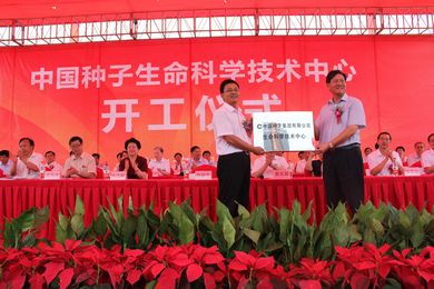 7月8日,我司在湖北武漢國(guó)家生物產(chǎn)業(yè)基地舉行中國(guó)種子生命科學(xué)技術(shù)中心開(kāi)工儀式。農(nóng)業(yè)部黨組成員、中國(guó)種子協(xié)會(huì)會(huì)長(zhǎng)梁田庚,湖北省委常委、副省長(zhǎng)張岱梨等領(lǐng)導(dǎo),方智遠(yuǎn)、戴景瑞、陳曉亞、朱英國(guó)、程順和、陳煥春、顏龍安、張啟發(fā)等院士,集團(tuán)公司副總裁韓根生、集團(tuán)公司總裁助理張偉等參加了儀式。