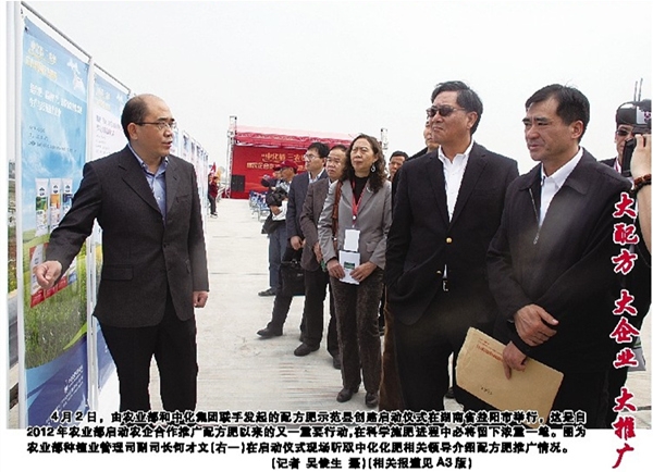 4月2日,以“中化情 三農(nóng)夢”為主題的農(nóng)企合作推廣配方肥示范縣創(chuàng)建啟動儀式在湖南益陽舉行,標(biāo)志著農(nóng)業(yè)部2012年啟動的農(nóng)企合作推廣配方肥工作步入新階段。 這次示范縣創(chuàng)建由中化集團(tuán)聯(lián)手農(nóng)業(yè)部共同發(fā)起。根據(jù)安排,從今年起,農(nóng)業(yè)部種植業(yè)管理司、全國農(nóng)技推廣服務(wù)中心和中化集團(tuán)下屬中化化肥,將在湖南、黑龍江、河南等11個?。▍^(qū)),選擇糧食主產(chǎn)縣(市)和經(jīng)濟(jì)作物優(yōu)勢產(chǎn)區(qū),聯(lián)合開展推廣配方肥示范縣創(chuàng)建工作,破解配方肥推廣最后一公里難題。 農(nóng)業(yè)部種植業(yè)管理司副司長何才文在出席啟動儀式時表示,推廣配方肥要依托大企業(yè),對接糧食和經(jīng)濟(jì)作物生產(chǎn)大市大縣,面向種植大戶,探索切實有效的種植模式。此次農(nóng)業(yè)部和中化集團(tuán)合作,就是要發(fā)揮各自優(yōu)勢,聯(lián)手打造一批科學(xué)施肥的典型樣板,讓配方肥走進(jìn)千家萬戶,讓科學(xué)施肥在廣袤大地生根發(fā)芽、開花結(jié)果。 圍繞科學(xué)施肥,中化集團(tuán)近年來建立了農(nóng)化知識傳播體系、現(xiàn)場服務(wù)指導(dǎo)體系和測土配方施肥服務(wù)體系三位一體的農(nóng)化服務(wù)體系。中化集團(tuán)副總裁韓根生表示,啟動配方肥示范縣創(chuàng)建將進(jìn)一步優(yōu)化集團(tuán)原有農(nóng)化服務(wù)體系和內(nèi)容,中化集團(tuán)將聯(lián)合各地農(nóng)業(yè)主管部門、地方政府和科研機(jī)構(gòu)在全國范圍內(nèi)舉辦科技服務(wù)進(jìn)萬村、創(chuàng)建農(nóng)民田間學(xué)校和中化植物醫(yī)院、開展農(nóng)資打假維權(quán)、保障優(yōu)質(zhì)產(chǎn)品供應(yīng)等系列活動,推動中國農(nóng)業(yè)科學(xué)發(fā)展。 2012年農(nóng)業(yè)部啟動農(nóng)企合作推廣配方肥以來,已有200家生產(chǎn)企業(yè)對接全國100個縣開展測土配方施肥工作,而中化集團(tuán)下屬中化化肥公司是農(nóng)企合作首倡單位。中化化肥總經(jīng)理王紅軍介紹,作為中國最大的化肥供應(yīng)商和國內(nèi)領(lǐng)先的農(nóng)化服務(wù)商,中化化肥目前形成了三大優(yōu)勢:一是由17家分公司和2100家分銷中心構(gòu)成的國內(nèi)最大的化肥分銷網(wǎng)絡(luò)覆蓋了中國95%以上的耕地;二是參控股產(chǎn)能超過1000萬噸,同時與具有資源和技術(shù)優(yōu)勢的跨國公司成立了戰(zhàn)略聯(lián)盟;三是建設(shè)了一支專業(yè)化的農(nóng)化服務(wù)團(tuán)隊,在田間地頭為農(nóng)民提供科學(xué)實用的指導(dǎo)服務(wù)。 啟動儀式上,相關(guān)領(lǐng)導(dǎo)為創(chuàng)建示范縣和中化化肥農(nóng)化服務(wù)隊進(jìn)行了授牌授旗。何才文、韓根生等參觀考察了位于益陽市的中化智能配肥站和農(nóng)民田間學(xué)校。 記者:吳俊生 |
