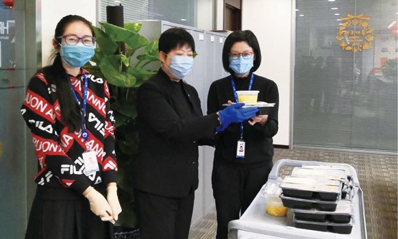 最強堅守者 “崗位就是我們的戰(zhàn)場,立足崗位、堅守崗位,做好防疫的同時,確保企業(yè)安全生產(chǎn)運營,就是我們對防疫阻擊戰(zhàn)作出的最大貢獻。”這是中化各級黨員的承諾,更是他們抗疫斗爭中的實際行動。 疫情發(fā)生以來,集團健康安全環(huán)保部作為集團防疫工作領(lǐng)導(dǎo)小組的辦事部門,承擔(dān)了大量會議組織、事項協(xié)調(diào)、內(nèi)通外聯(lián)等方面工作,很多黨員職工主動放棄春節(jié)假期,從大年初一開始就投入到緊張忙碌的工作中,有的甚至剛回到老家又連夜驅(qū)車趕回公司。黨員李晗說:“在戰(zhàn)‘疫’面前,所有的困難與挑戰(zhàn)、辛苦與付出都不算什么,崗位就是戰(zhàn)場,使命面前我們責(zé)無旁貸!” 中化聚緣專項服務(wù)部經(jīng)理、黨員李文濤主動放棄假期,大年三十就回到工作崗位,組織職工做好各項后勤保障工作,積極協(xié)助協(xié)調(diào)防疫。她80多歲的老母親春節(jié)前剛剛病重入院,平時難得休假的她本打算利用春節(jié)時間好好照顧一下老人。但疫情來臨,她義無反顧地選擇返回了公司。她說:“我是一名黨員,這時候我不上誰上!”就這樣,她白天堅持上班,晚上再跑去醫(yī)院探望住在ICU的老人,兩頭忙。