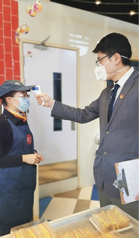 中化山東華鴻黨員職工李祥,每天奔走各個崗位為員工發(fā)放防護口罩并細(xì)心指導(dǎo)、監(jiān)督崗位防疫落實情況。每天完成夜班值班后,他不急著下班,而是主動配好消毒劑、背上噴霧器,對辦公大廳門把手及各個角落進行消毒處理,為當(dāng)天值班人員創(chuàng)造健康安全的工作環(huán)境。 1月26日晚上9點40分,金茂怡生園酒店餐飲部一名18歲的實習(xí)生按規(guī)定在宿舍接受體溫測量時,出現(xiàn)體溫超標(biāo)現(xiàn)象(38.7攝氏度),根據(jù)規(guī)定必須送醫(yī)檢查。特殊時期孩子很慌亂、情緒低落,不停地說自己沒被感染、不去醫(yī)院、要求回家。關(guān)鍵時刻,黨員李振峰、黨支部書記劉文紅第一時間啟動突發(fā)應(yīng)急預(yù)案,耐心給員工和家長做思想工作,講述非常時期防疫不能掉以輕心。真誠的話語最終打動了員工和家人,在做好防護之后一起趕赴疫情指定醫(yī)院就診。