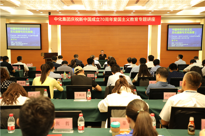 8月29日,中化集團在京舉辦慶祝新中國成立70周年愛國主義大講堂,邀請中央黨校教授、中央黨校創(chuàng)新工程首席專家陳宇飛作專題講座。來自70余家京內外單位共計550余名中化員工在現場或通過視頻參會方式聆聽講座。 陳宇飛教授以“中國特色社會主義道路和文化自信”為講座主題,從“文明碰撞”“文明再造”兩個維度,全面回顧了中國自近代以來在道路抉擇、文化變遷方面的艱辛探索和偉大實踐,進一步弘揚了愛國主義精神,把愛黨愛國愛司統(tǒng)一起來,鼓舞聽眾以更加飽滿的精神狀態(tài)和創(chuàng)業(yè)激情,投入到中化集團打造世界一流綜合性化工企業(yè)的新長征中去。 本次講座既是中化集團慶祝新中國成立70周年的重要活動之一,也是公司“不忘初心、牢記使命”主題教育的一次再學習再提高。聆聽講座的廣大員工表示,愛黨愛國愛司是中化與生俱來的文化傳統(tǒng),講座以史鑒今,進一步激發(fā)了大家的愛國熱情和干事創(chuàng)業(yè)的激情,我們一定要加強習近平新時代中國特色社會主義思想的學習,進一步弘揚愛國主義精神,堅定“四個自信”、樹牢“四個意識”、做到“兩個維護”,把愛黨愛國愛司的情懷,轉化為推動集團改革轉型的強大精神動力,為早日實現科學技術驅動的世界一流綜合性化工企業(yè)戰(zhàn)略目標凝心聚力、努力奮斗,以更加優(yōu)異的成績獻禮新中國70周年華誕。 |