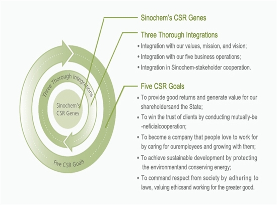 Sinochem Group considers CSR to be part of the company's genes. We integrate CSR into our values, mission, and vision, as well as in all business operations and embed it in cooperation with our stakeholders, allowing us to realize an organic combination of CSR andbusiness management.