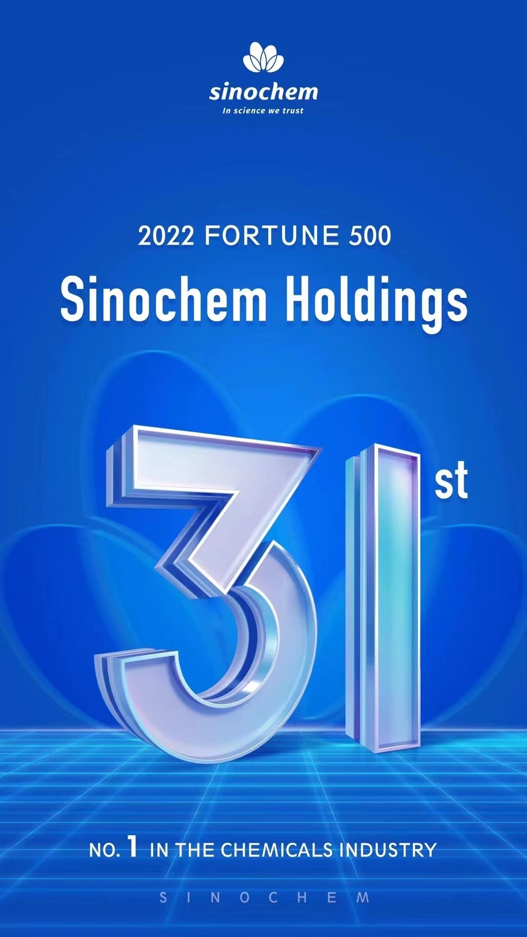 On August 3, Fortune released its “Global 500” list for 2022, and Sinochem Holdings ranked 31st among all companies and 1st in the chemicals industry, demonstrating satisfactory performance in the first year of the company’s establishment. In the previous year, Sinochem Group and ChemChina were ranked 151st and 161st respectively. The significant jump in the ranking of Sinochem Holdings, which was established through the joint restructuring of Sinochem Group and ChemChina, proves that the “1+1>2” synergy. On March 31, 2021, with the approval of the State Council, Sinochem Group and ChemChina were merged into Sinochem Holdings Corporation Ltd. (“Sinochem Holdings”), wholly owned by the SASAC (State-owned Assets Supervision and Administration Commission on behalf of the State Council). On May 8, 2021, Sinochem Holdings became the holding entity for Sinochem Group and ChemChina. Since its establishment, Sinochem Holdings has conscientiously implemented major decisions and deployments of the Party’s Central Committee, and ensured smooth and orderly business operation. As its reorganization and merging is steadily underway, Sinochem Holdings has made gratifying progresses in its merging of teams, management and businesses. With full enthusiasm for work and entrepreneurship, all staff at Sinochem Holdings are actively seeking external opportunities and tapping into the potential of internal synergy. After effective responses to adverse conditions such as recurrent COVID-19 outbreaks, drastic market fluctuations and tension in the supply chain, it has made effective progresses in various aspects including safety and environmental protection, production and operation, strategic development, and risk prevention and control. In 2021, the company achieved a total revenue of RMB 1,111.1 billion and received Grade A in the performance assessment of central SOEs. In the first half of 2022, Sinochem Holdings earnestly studied and implemented the important instruction of General Secretary Xi Jinping to “prevent the pandemic, stabilize the economy, and ensure safe development”, as well as fulfilled the important instructions of the State Council to “stabilize the macro-economy and achieve the expected development goals”. All staff at Sinochem Holdings have worked together to make remarkable achievements in fighting against the pandemic, stabilizing the production, promoting investment, facilitating merging and strengthening innovation capabilities. In the future, Sinochem Holdings will continue to adhere to “In Science We Trust”, and make unwavering efforts to build a technology-driven, innovative enterprise and a world-class, chemical conglomerate. It will continue to improve its technological innovation, core competitiveness and sustainable development, so as to create maximum value for society, clients, shareholders and employees, and contribute to the development of the industry and society as a whole.
