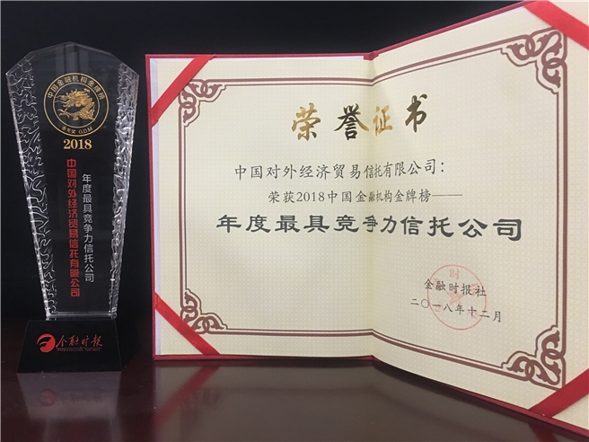 12月12日,在金融時報社主辦的“2018新時代金融發展峰會”上,中國外貿信托入圍“2018中國金融機構金牌榜·金龍獎”獲獎榜單,摘得“年度最具競爭力信托公司”獎項;12月10日,在《家族企業》雜志、中歐國際工商學院主辦的“第五屆中國家族企業傳承主題論壇暨中歐第七屆中國家族傳承論壇”上,中國外貿信托與中化集團金融事業部下屬中宏保險一同獲“最佳保險金信托創新服務獎”,并承辦此次論壇的“為傳承而說”專場分論壇。