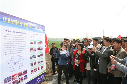 圖為參訓農民代表參觀中化化肥高產創建示范基地