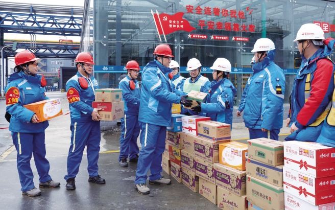 近日,星火有機硅多個分廠陸續啟動年度檢修工作。面對寒潮天氣,一線干部員工全力奮戰,確保檢修順利進行。為做好生產服務保障工作,2月14日,星火有機硅工會組織服務隊前往檢修現場,向辛勤工作的檢修人員送去暖心物資,并叮囑大家注意防寒保暖、勞逸結合,安全高效完成檢修任務。