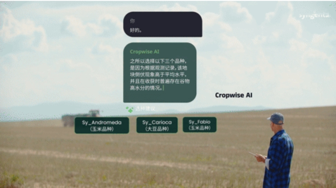 依托先正達集團20年的衛(wèi)星圖像和天氣模式等信息積累、超過8萬個關于作物生長階段的觀察記錄和豐富的農藝模型資源,CropwiseTMAI成為全球農戶的“私人顧問”。農戶可以和CropwiseTMAI實時對話,從而快速獲得定制化種植建議,包括精確的植保應用建議、品種分布建議,以及針對病蟲害的防治策略。