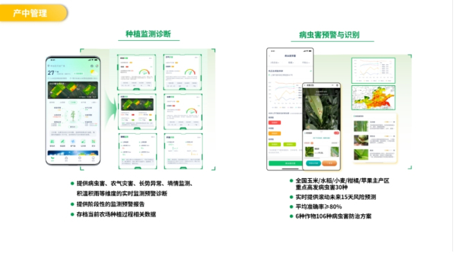 例如,該平臺利用AI圖像識別技術,可在幾秒內診斷出田間病蟲害類型,并提供防治方案指導,大幅提高病蟲害防治效率。