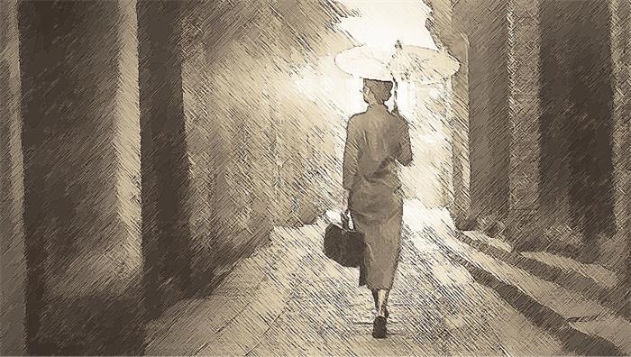 恍惚中,張愛(ài)玲帶著她的孤傲,著一襲華美旗袍,撐一把墨荷油傘,穿過(guò)舊上海悠長(zhǎng)的弄堂,于煙雨濛濛中遠(yuǎn)去……