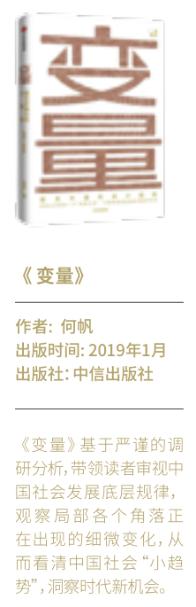《變量》一書的作者為北京大學匯豐商學院教授何帆。他認為,中國這棵生長了3000年的文明大樹,在2018年自下而上地展現出五個深度影響經濟和社會發展的底層變量:大國博弈、技術賦能、新舊整合、自下而上、重建社群。