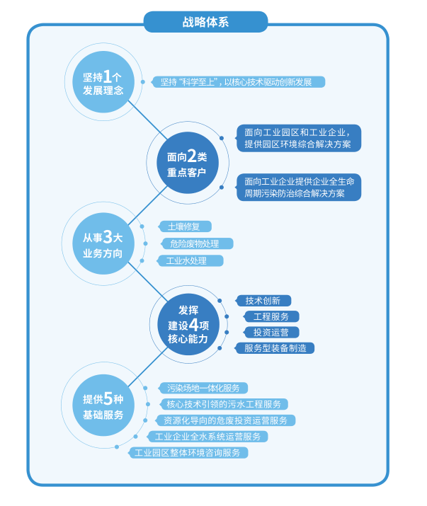 中化環境作為集團發展環境科學的業務平臺,秉承“科學至上”核心價值理念,聚焦自身能力建設,完成注資和更名,不斷在實戰中打磨公司戰略,形成“12345”戰略體系。同時,在集團創新戰略引領下,將沈陽院設計工程公司整合進中化環境,并主動開展與中國化工環保業務協同,努力集中兄弟公司內部相對分散的環保優勢資源,全面提升中化環保產業的戰略格局和綜合實力。