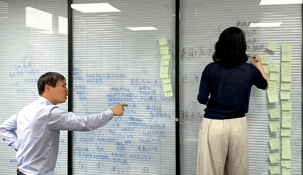 初冬的傍晚,位于復(fù)興門外的中化大廈19層一間會議室里聚滿同事,桌上擺著隨手記錄的各種稿紙,創(chuàng)新中心的同事們正群情激奮地討論技術(shù)方案。